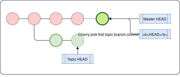 Rather than merging/rebasing all the commits in a topic branch, you might only want a certain commit, for example I have a drafts local branch where I’m working on several potential blog posts, but I may only want to publish one of them. git cherry-pick <picked commit> allows you to do just that. We can use git log <base>..<topic> to get the specific commits we should choose from.