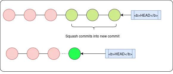 When working on a feature for a project, you may make incremental commits in a feature branch whilst working on it for each small sub-feature. However, this has the disadvantage of clogging up the commit history with minor commits, which may be against the contribution guidelines for the project. To get around this, you can squash the raft of minor commits into a larger single commit (using the pick command for the first commit and squash command for the subsequent commits). Git will apply all changes in a single commit and ask you to edit the overall commit message.